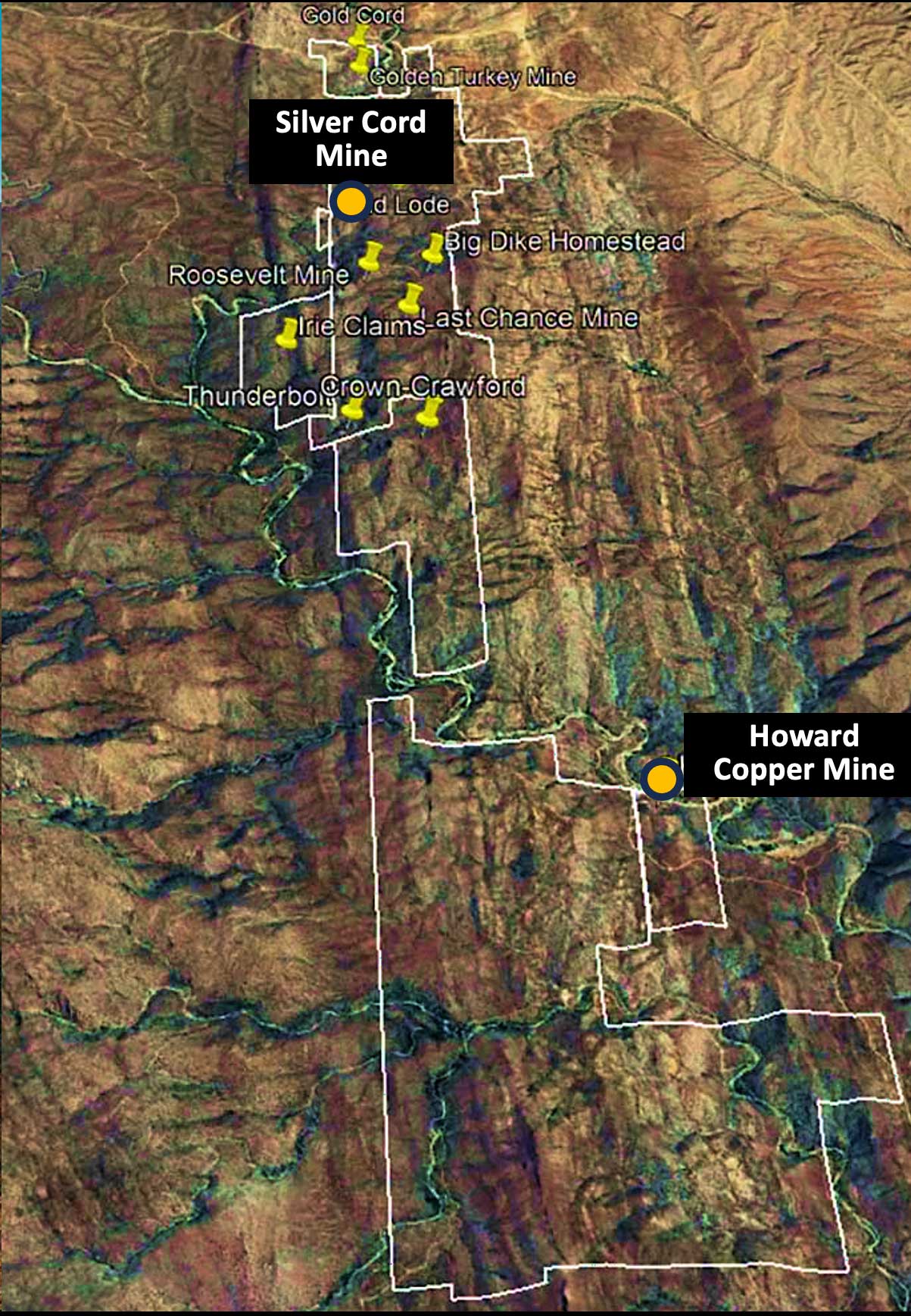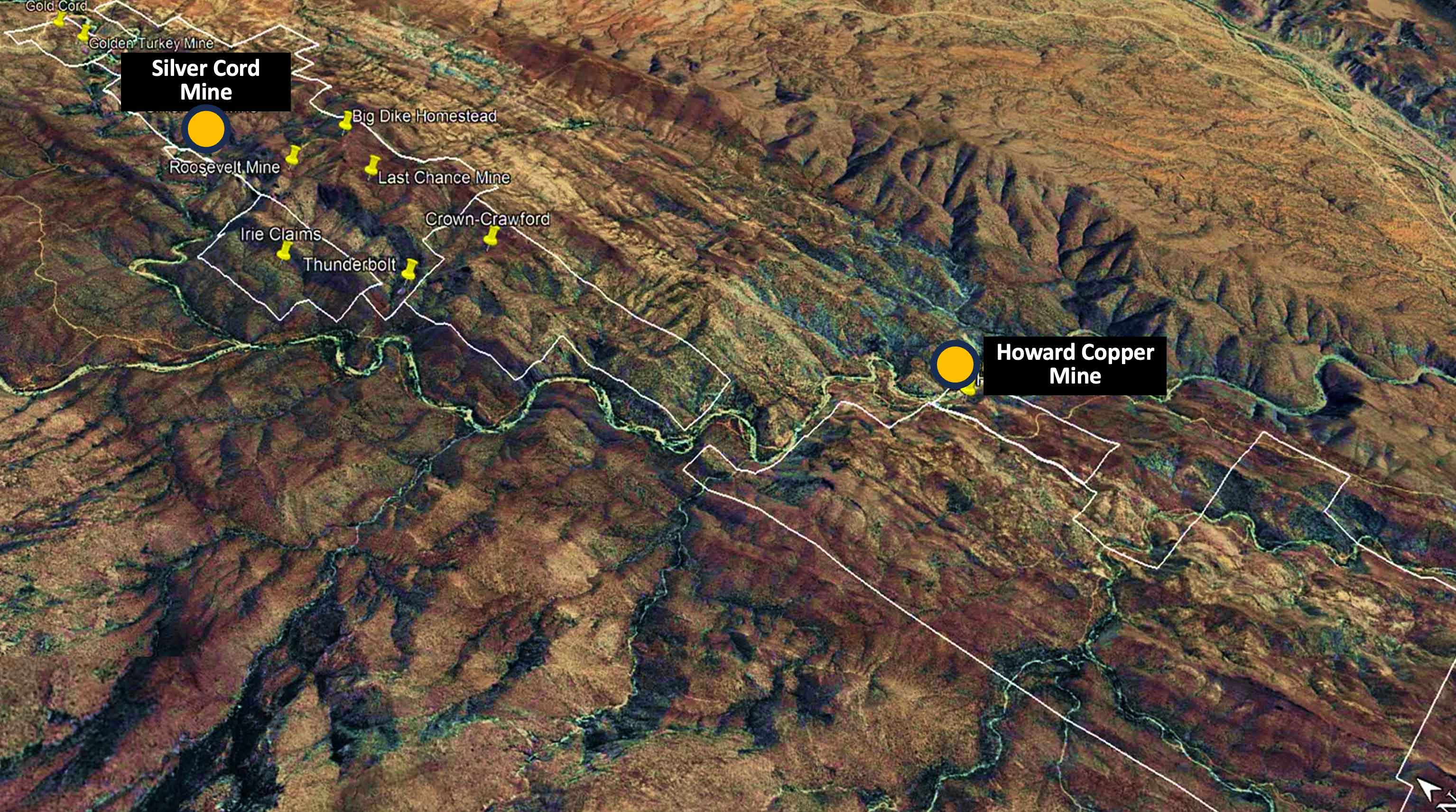 The Silver Cord Project is located near Cleator, Arizona in the Black Canyon mining district Yavapai county, part of the Prescott National Forest.  The Silver Cord Project consists of 133 contiguous mining claims covering 2,437 acres (986 ha.).  The properties are easily accessible with 4-wheel drive via Interstate I-17 just 90 miles north of Phoenix. There are 12 former operating mines on the Silver Cord land package.  There are also 60 vein-hosted base and precious metal mines within a 150 km radius.